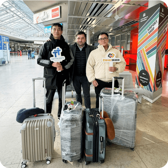 Nach der Ankunft in Deutschland empfangen wir unsere Kandidaten am Flughafen, begleiten sie zur Unterkunft und unterstützen sie bei allen ersten Schritten wie Wohnungsanmeldung, Bankkontoeröffnung und mehr.
